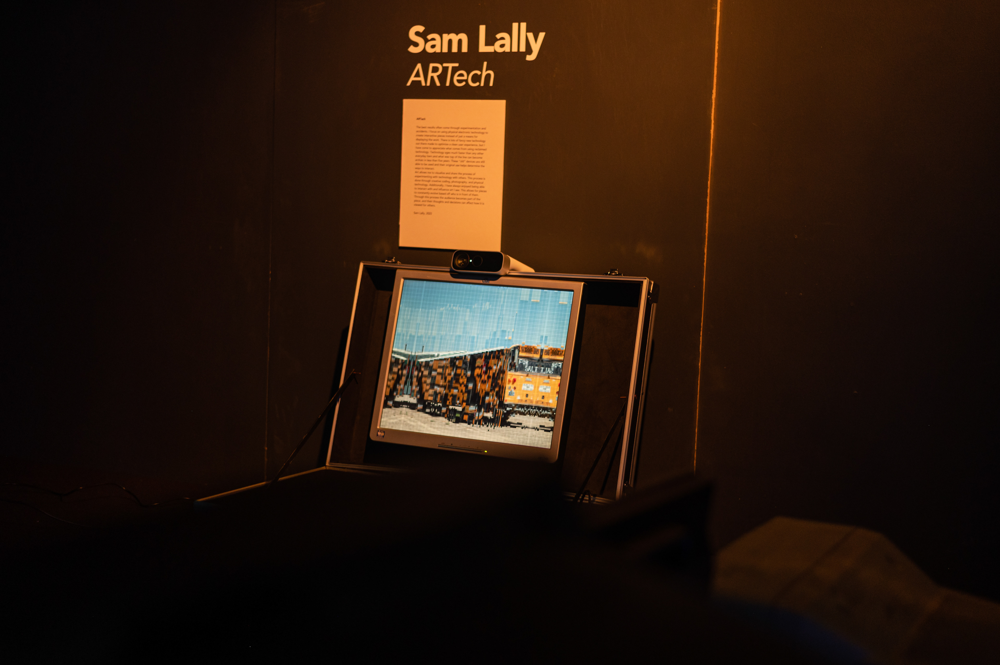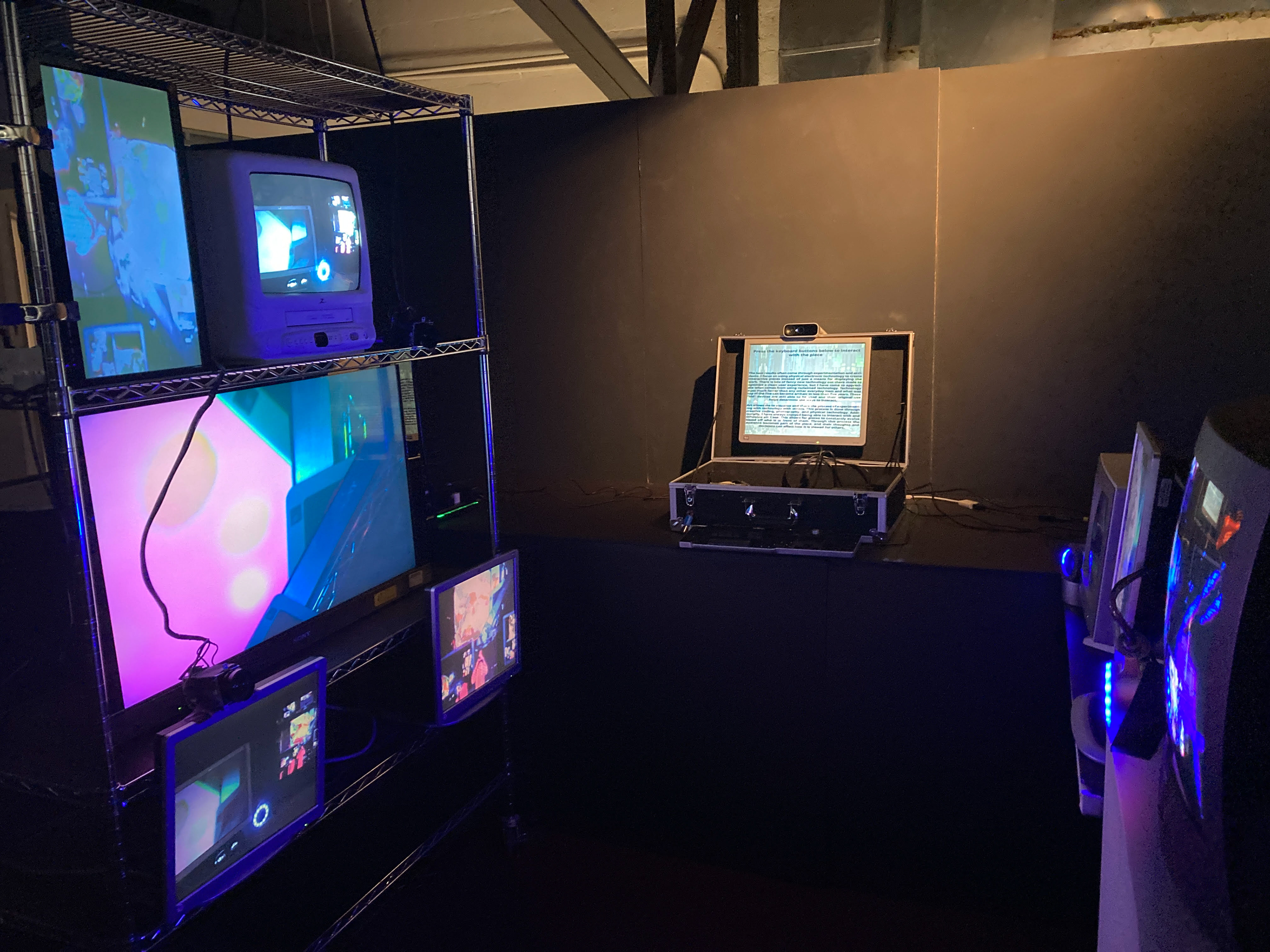 Experimentation with creative coding, feedback loops, photography, and human interaction. Piece was shown at three shows in Blacksburg.